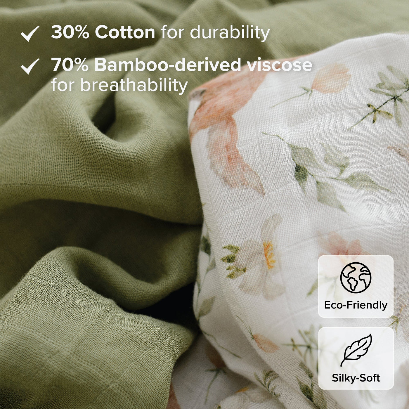 Premium Materials: Crafted with 30% cotton and 70% viscose derived from bamboo, our swaddles for newborns are ultra-soft and breathable, ensuring your newborn comfort while being kind to the planet.