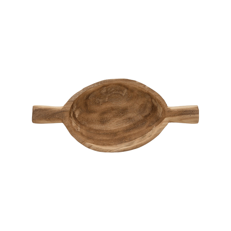 Featuring carved side handles, the tray is both practical and stylish—ideal for serving drinks, displaying candles, or styling decorative accents. Its elongated design makes it versatile enough for use on coffee tables, kitchen counters, or entryway consoles, adding rustic charm and texture to any space.