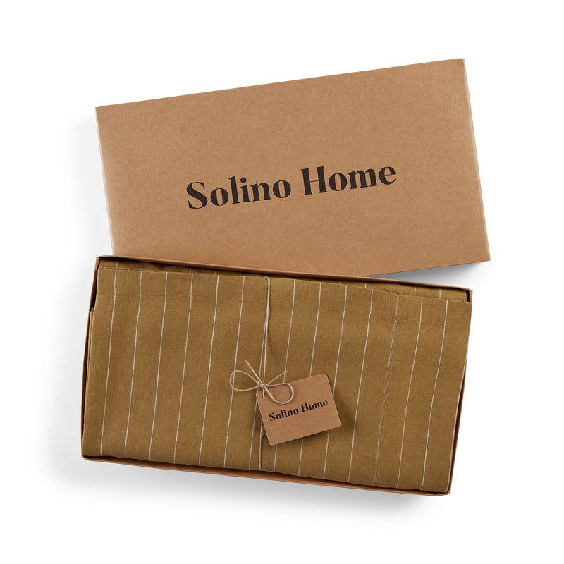 Pinstripe Tablecloth - Camel and White Pinstripe / 60 x 60 Inch