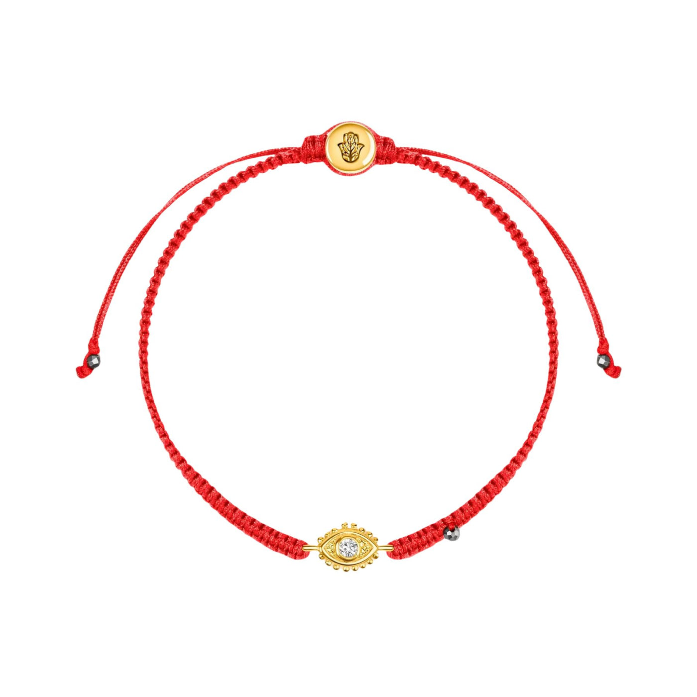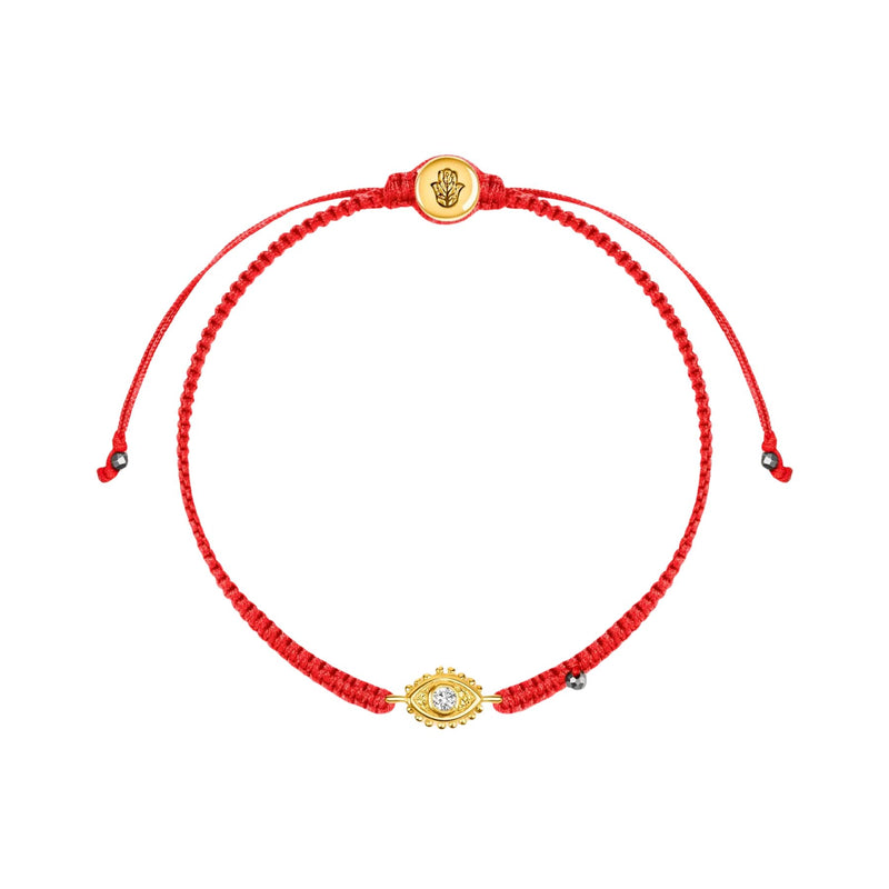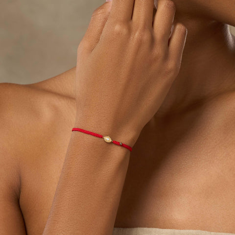 Handcrafted with gold-plated brass and cubic zirconia accents, it combines artisanal detail with spiritual intention. The adjustable drawstring closure ensures a secure and comfortable fit from 6.5" to 9", making it a versatile bracelet to wear daily as a symbol of peace and protection.