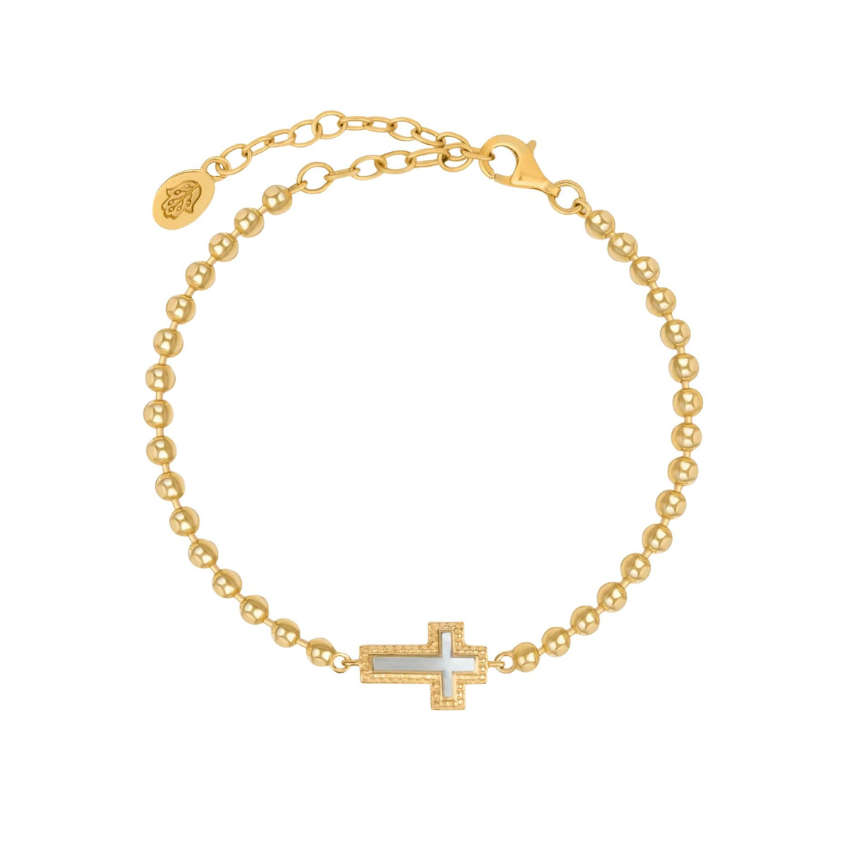 Wherever life takes you, faith and community are guiding lights. The Sparkling Soul Mother of Pearl Cross Bracelet features a luminous cross symbol, delicately crafted from Mother of Pearl for a radiant, iridescent effect. This meaningful design adds a layer of protection, while also serving as a reminder of love, devotion, and spiritual connection.