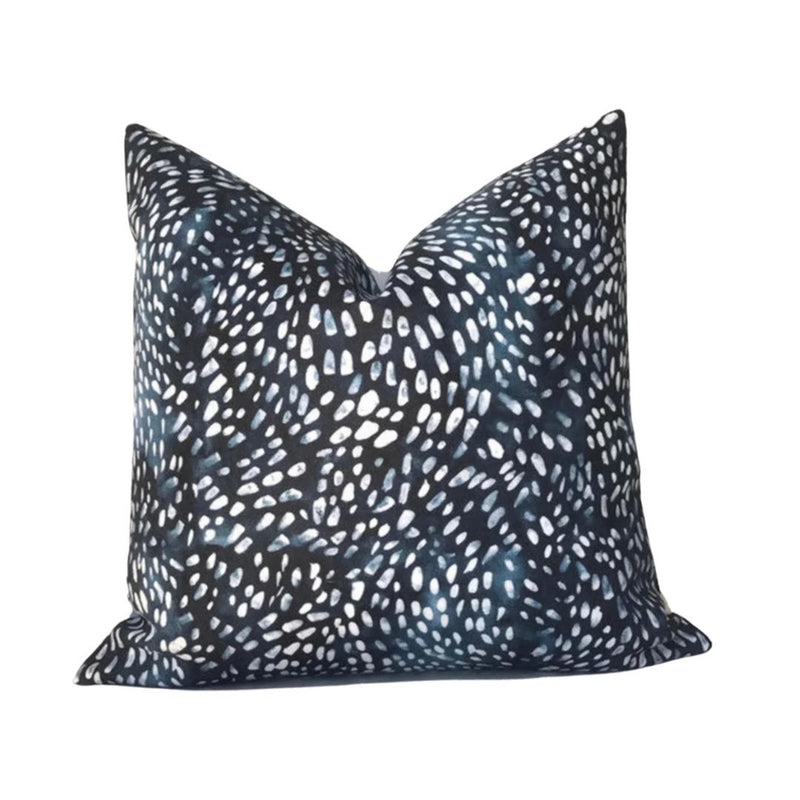 Add subtle pattern and deep color to your seating with the Speckled Pillow Cover in Navy Blue. The front features speckled printed fabric in a dark navy tone, offering visual texture while remaining easy to coordinate, and the ivory linen backing keeps the overall look clean and balanced. This cover works well on sofas, accent chairs, or layered pillow arrangements where darker tones provide contrast.